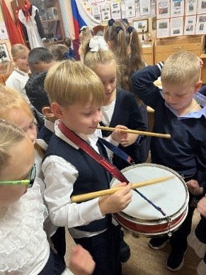 Из года в год, в сентябре, ученики первых классов знакомятся с музеем, где они впервые прикасаются к великому прошлому нашей страны. Первоклассники с живым интересом слушали, активно отвечали на вопросы. Ребята очень эмоционально реагировали на все, что их окружало в пространстве экспозиции.